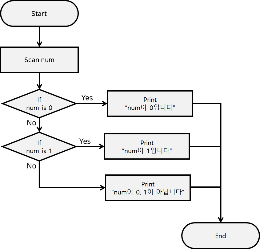 지금까지 배운 if문과 switch문을 순서도(Flow Chart)로 나타내보면 아래와 같이 나타내볼 수 있습니다.
