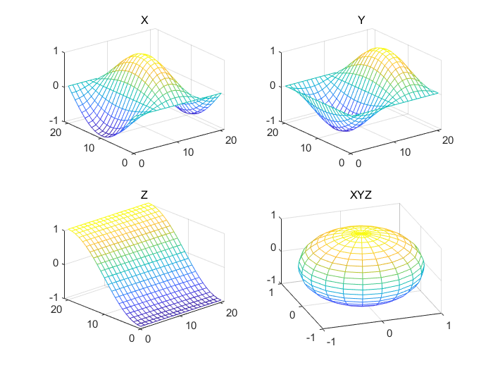 subplot(2,2,4); mesh(X,Y,Z); title('XYZ');