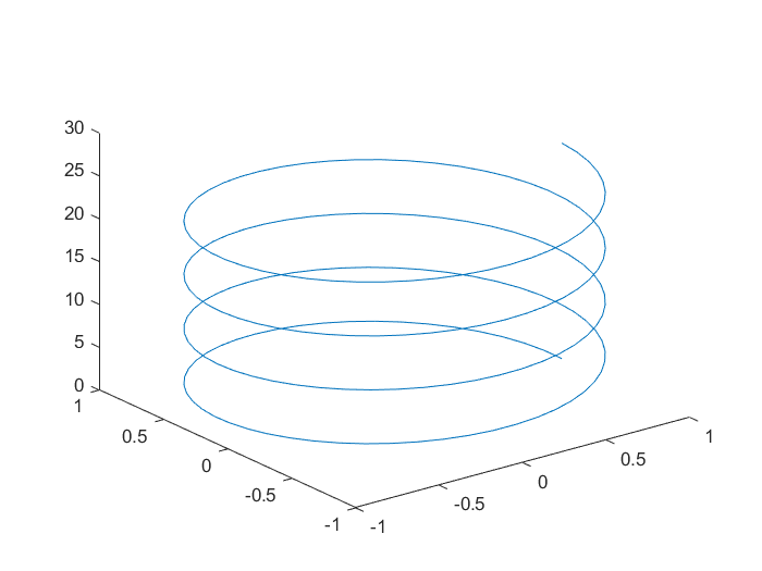 다음과 같이 매개변수 3차원 그래프를 그려볼 수도 있습니다. (plot이 아닌 plot3를 사용합니다.)