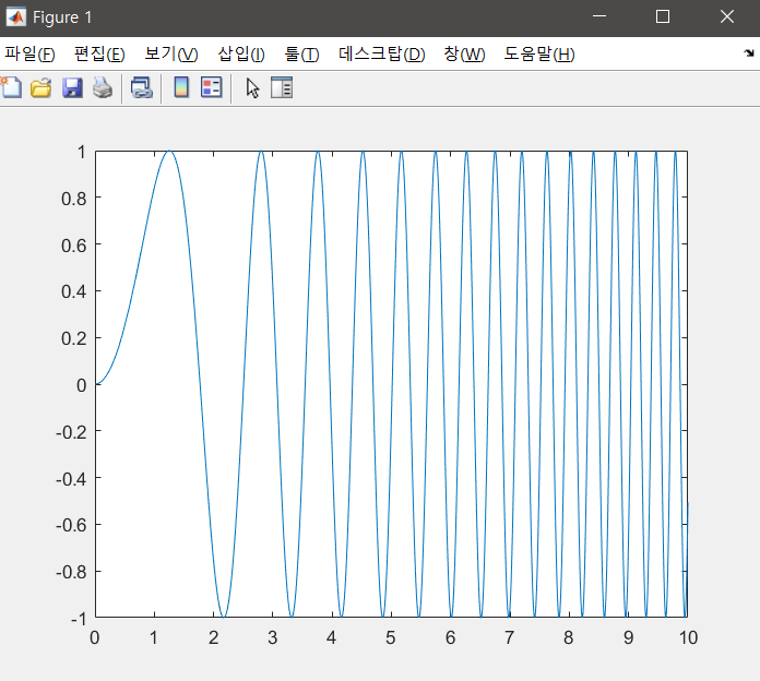 fplot(@(x)sin(x.^2),[0,10])