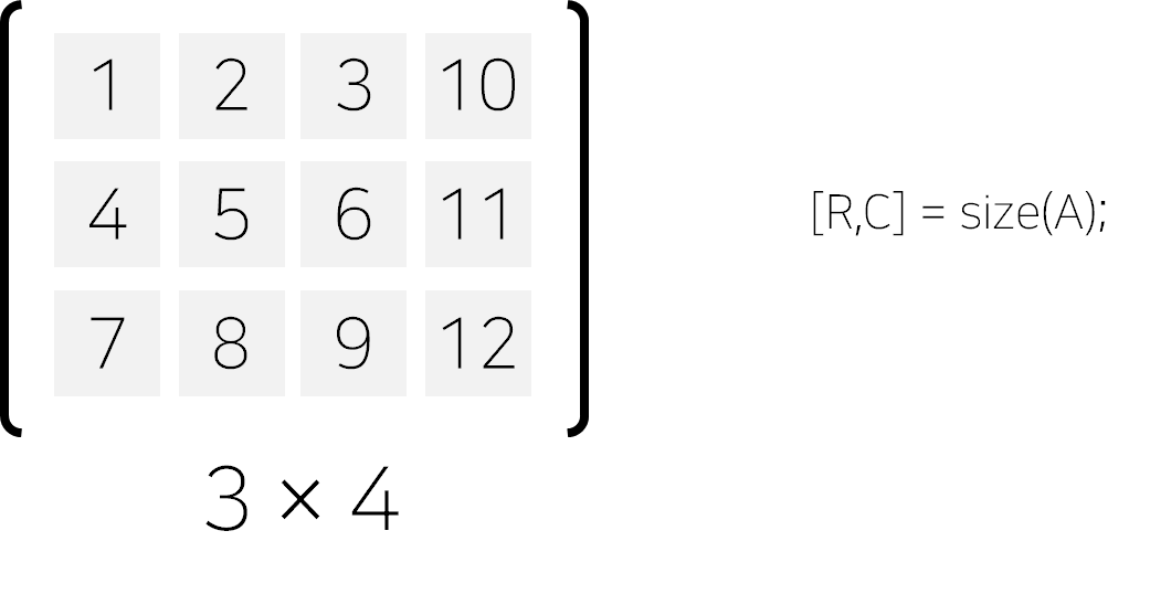 위의 행렬이 있다고 생각해봅시다. 그러면, 첫번째로 행렬의 크기를 구합니다.