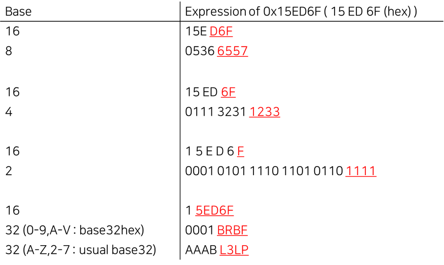 지금까지 큰 틀에서 메모리를 살펴보았다면, 더 좁은 의미의 메모리(주 기억 장치)에 대해 살펴보겠습니다. 메모리는 운영체제에 의해 관리되어 프로그램에 할당됩니다. 메모리는 1차원의 공간으로 구성되며, 각 공간의 주소는 일반적으로 16진수로 표기합니다. 이는 일반적으로 메모리와 관련된 단위들이 2의 거듭제곱 진법 형태를 가지기 때문입니다. 16진수는 다른 2,8 진법 등으로 쉽게 변환할 수 있습니다. 아래는 그 예시를 보여줍니다.